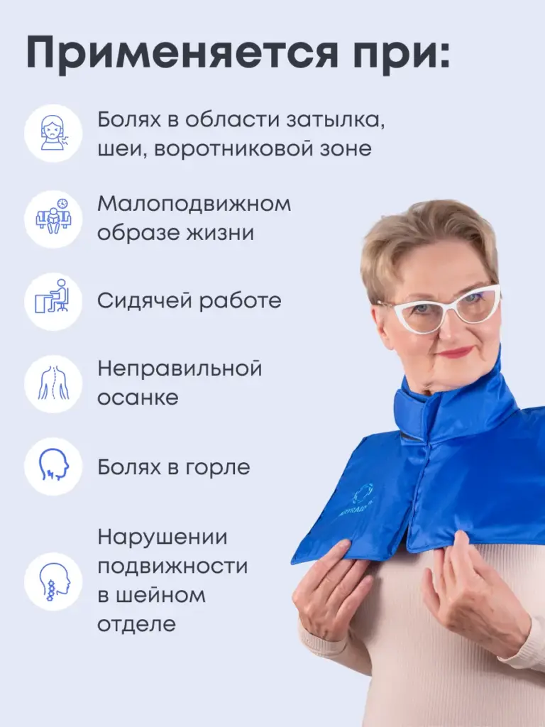 Бандаж предназначен для использования в домашних условиях, после занятий спортом или физических нагрузок, при ощущении дискомфорта и усталости в области спины, грудного отдела и шеи. Нормализует мышечный тонус и создает эффект релаксации.